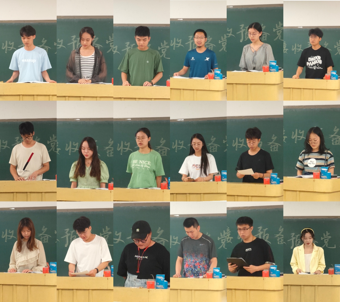 各位党员在唐灿等18同学宣读入党志愿后针对是否同意接收其为预备党员逐一进行表决,投票结果为全票通过,会议决定同意接收唐灿等18同学为预备党员。