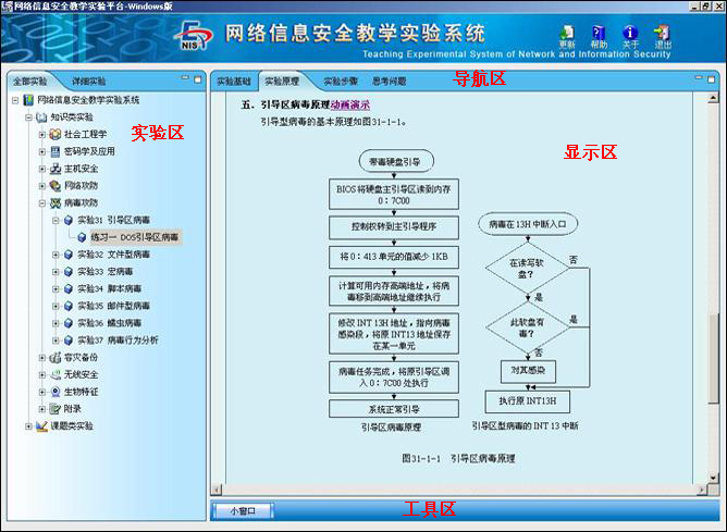 信息安全实训平台具备完整的信息安全教学实验体系,包括知识类实验和课题类实验,涉及社会工程学、密码学、主机安全、网络攻防、病毒攻防、容灾备份、无线安全和生物特征等八个方面。平台由硬件系统、软件系统及其配套的实验教程组成,实验教程包含了详细的实验原理和具体的实验步骤,硬件系统包括主控中心平台、安全设备、组控设备、应用服务器和管理服务器,软件系统包括网络信息安全教学实验平台、应用服务软件包、实验教学管理系统等。