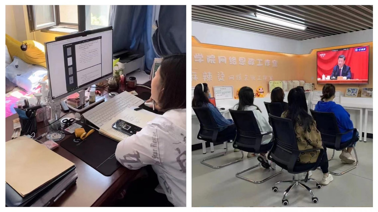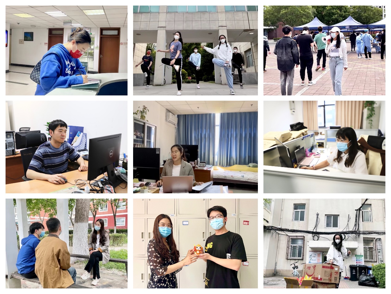 驻校期间,辅导员李栋栋、郭笑妍、律茵、李哲雅、张静茹在关心学生日常学习生活的同时,还关注在校园全封闭状态下如何加强对学生的思想引导,了解学生的思想状况,解决学生问题和诉求,与同学们同吃同住同运动,办公室里每天都萦绕着欢声笑语。