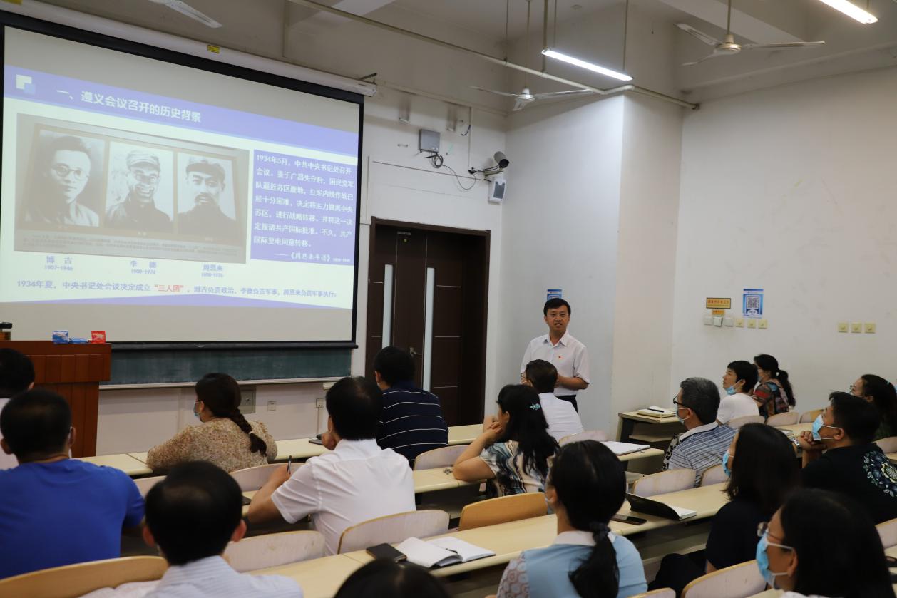 6月24日下午,校党委副书记汪庆华以《遵义会议与长征精神》为题,为澳门网投官方网站师生讲授了一节主题鲜明、内容丰富的专题党课。学院领导班子成员、党委委员、教师党支部书记、教研室主任、师生党员代表、新发展党员代表、入党积极分子代表参加专题党课学习。