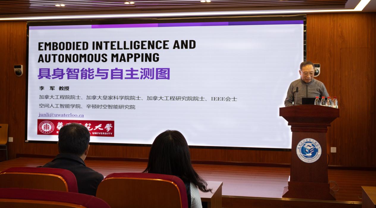 2025年12月3日下午,澳门网投官方网站于主E510举办了具身智能与自主测图专题学术讲座。华东师范大学空间人工智能学院名誉院长、辛顿时空智能创新研究院院长、加拿大皇家科学院院士、加拿大工程院院士李军教授到访学院作专题学术报告。活动由人工智能教研室主任滕婧主持,学院青年教师与相关学科研究生参加了此次讲座。