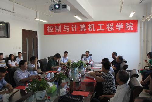 2018年6月28日上午9:00,控计学院在主楼E606会议室举行“大手牵小手 携手共奋进”离退休党委与控计学院党委共建“课程思政之我见”活动。参加会议的人员有学校党委副书记、纪委书记何华;关工委主任、原校党委副书记朱常宝;人事处处长、党委教师工作部部长张新娟;离退休党委书记李金全;关工委副主任、原人文学院党总支书记黄庆业;原动力系主任、教学督导组组长王清照;原期刊出版部副主编、市教工委思政信息员许宝成。控计学院全体院领导、教工党支部书记及教研室主任出席会议。会议由学院党委书记刘威主持。