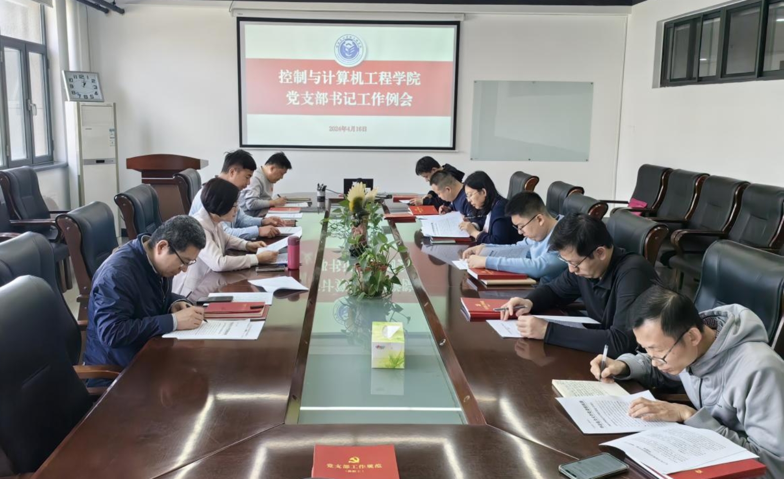 4月16日,澳门网投官方网站党委召开全体教师党支部书记工作例会,部署近期基层党支部建设各项工作。学院党委书记王韶华、组织员董宏伟和全体教工党支部书记参加会议。