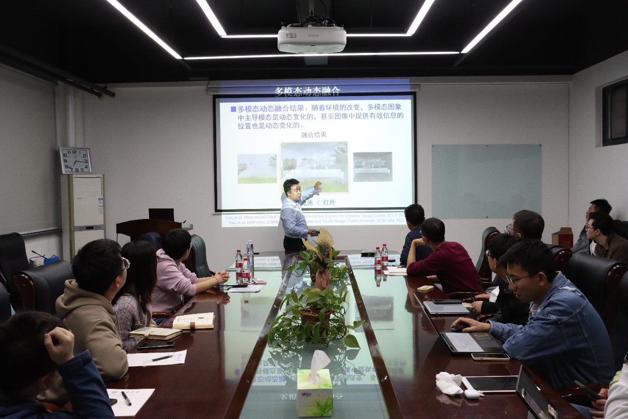 在讲座中,胡老师介绍到随着传感器技术的发展和普及,各领域所面临的数据类型变的急剧复杂且丰富。因此科学探测、医疗诊断、社交媒体分析、机器人等领域纷纷出现了海量的多模态异构数据,然而不同模态数据中蕴含的有效信息存在互补、差异、质量参差不齐且动态变化等核心问题。胡老师分享了其团队在面向低质、多源、异构数据构建学习模型中的最新理论成果。并与大家一起系统梳理了当前多模态数据融合的发展现状以及存在的问题,分析介绍了人脑在处理多感官数据融合时的柔性机制,最后结合当前最前沿的多模态数据动态可信融合的学习算法,展示了其在不同场景下的应用成效。报告获得与会听众的热烈共鸣。